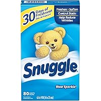 Amazon Prime members only! Get Snuggle 80 Count Fabric Softener Blue Sparkle Dryer Sheets for only $2.49.